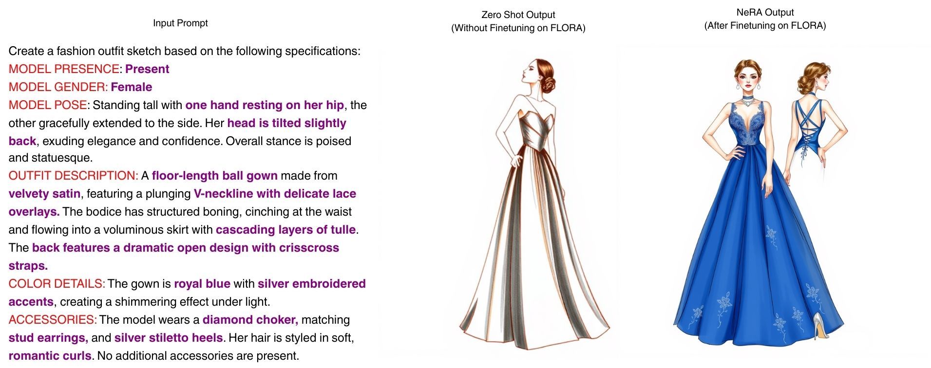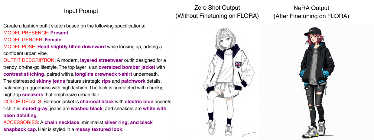 Models fine-tuned on FLORA generate more accurate and stylistically nuanced fashion images from text inputs.