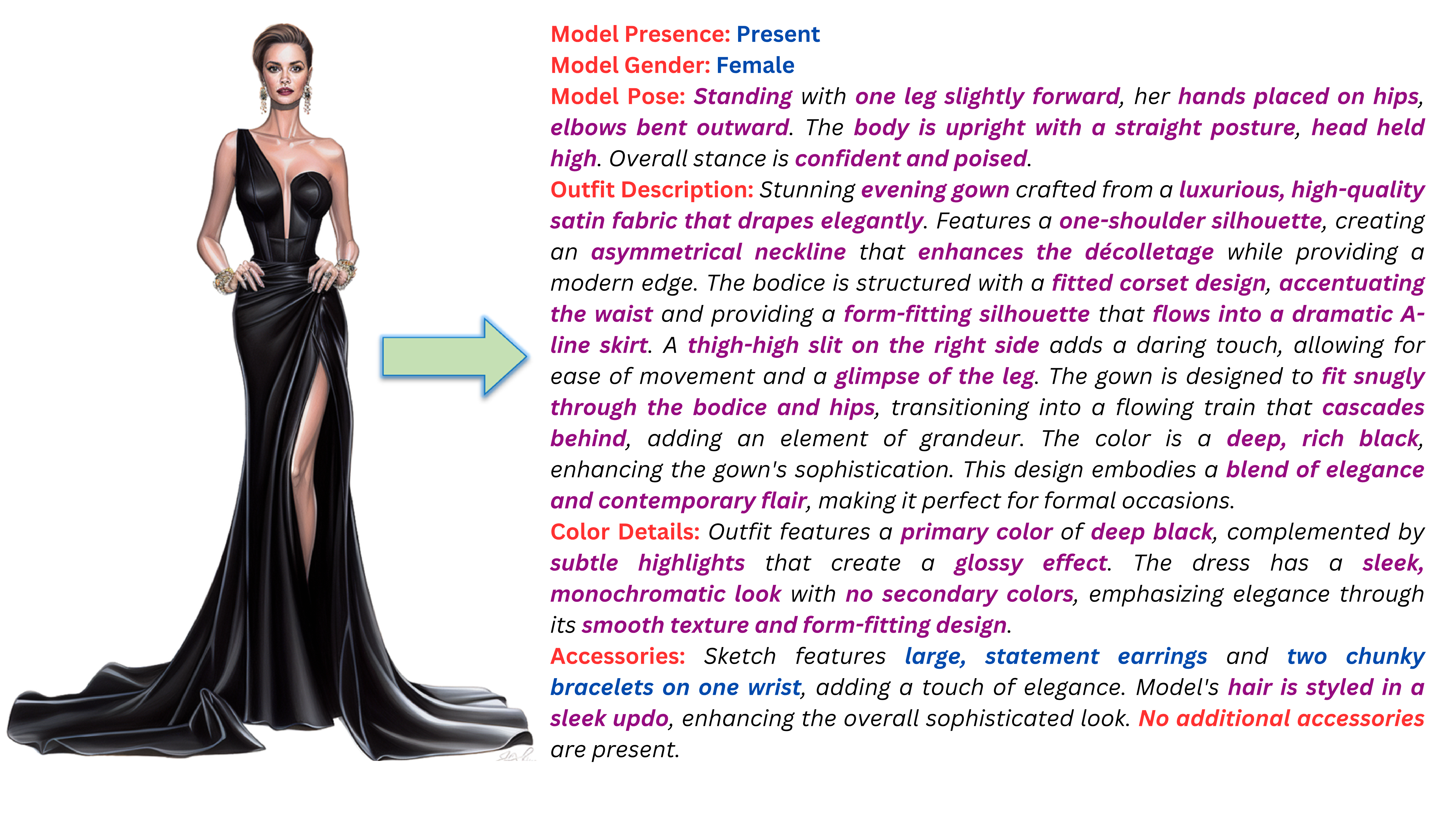 - Offers a sketch-centric benchmark with high-quality pairs of fashion outfit sketches and textual descriptions.